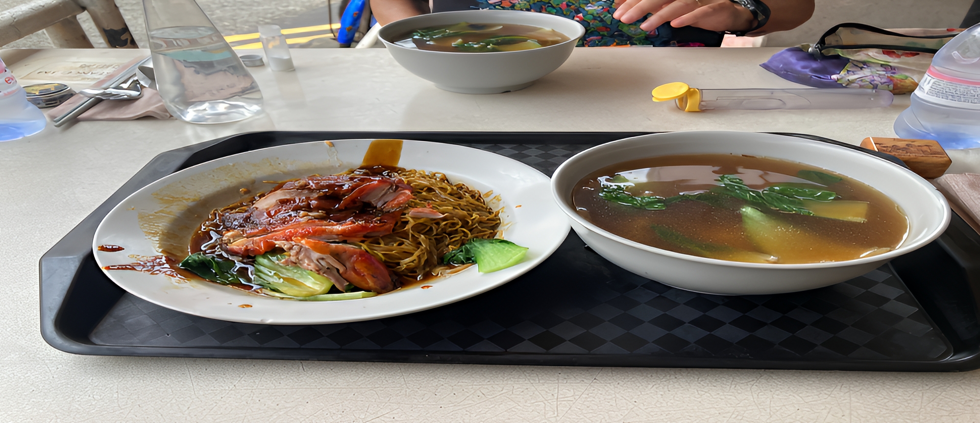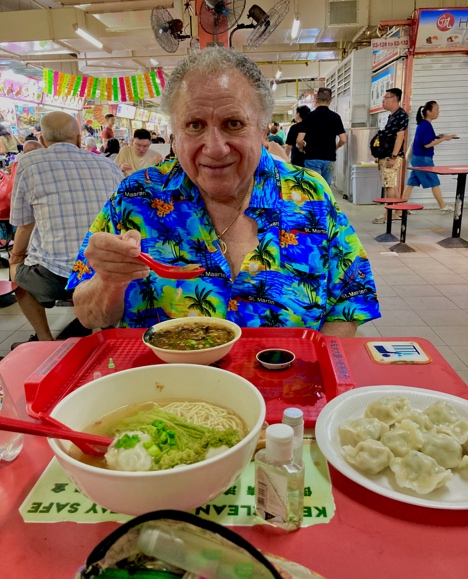 Nonetheless we tried a good portion of the “Street Foods,” and enjoyed most of them. Needless to say, we had to watch out for their idea of mild, medium, and spicy. “Spicy” could power the space shuttle. We were fortunate that the string of restaurants across the street from our hotel were Chinese, Korean, Indian, and Singaporean, thus offering us a cornucopia of authentic foods within walking distance. Once again, LOCATION, LOCATION, LOCATION. During our stay in this ultra-clean multi-cultural megalopolis, we managed to give each one a try. On one occasion, we opted for the Chinese-style duck, with noodles long enough to be used as clothes lines in a laundry with no dryers. It was paired with a bowl of marvelous dim sum soup.