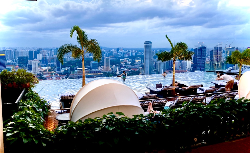 Up bright and early to get a good head start on more stuff to see. Yes. We started off with the Marina Bay Sands Hotel. It is gargantuan, consisting of three towers connected by a swimming pool.