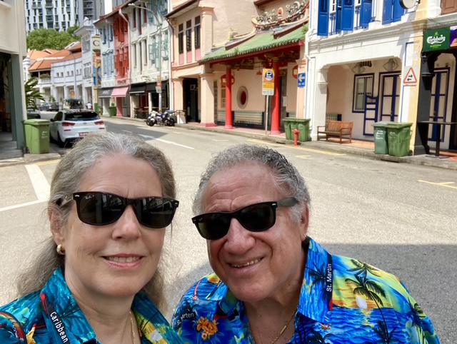After our last blast through Jakarta traffic, we made it to the airport, where we did our security symphony to board our plane to the much-vaunted island country, and city-state, Republic of Singapore. How’s that for a mouthful? Be aware, they have fines for just about any infraction one might think of….Littering, jaywalking, spitting, smoking, vaping, chewing tobacco, carrying of firearms, chewing gum (except dental/nicotine gum) public displays of affection, and last, but certainly not least, misuse of public toilets (not flushing can result in a fine). The omnipresent cameras, both inside of buildings, and on the streets, make for an eerie sense of enforced safety, and cleanliness. There are other rules that you might want to check out if you’re going there. Ignorance of the law in Singapore is “NO EXCUSE.” These people like their towns and streets the way they are, and that’s it. It took a bit of getting used to. Yes. Naomi and I like to hold hands when we walk around town. No “Kissy Face/Huggy Bear” in public.