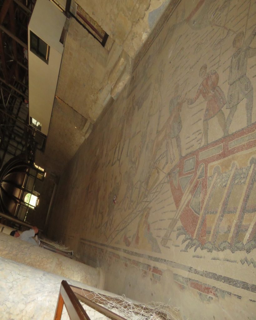 The number of mosaics is staggering, as is the attention to detail for the “creature comforts” such as hot tubs, cool baths, steam baths, dining rooms, bedrooms, and just about anything else the imagination of the time could conjure. Also in evidence is the lack of frescos. It’s obvious that money was no object. These guys learned well from King Herod, and other mega-wealthy oligarchs.