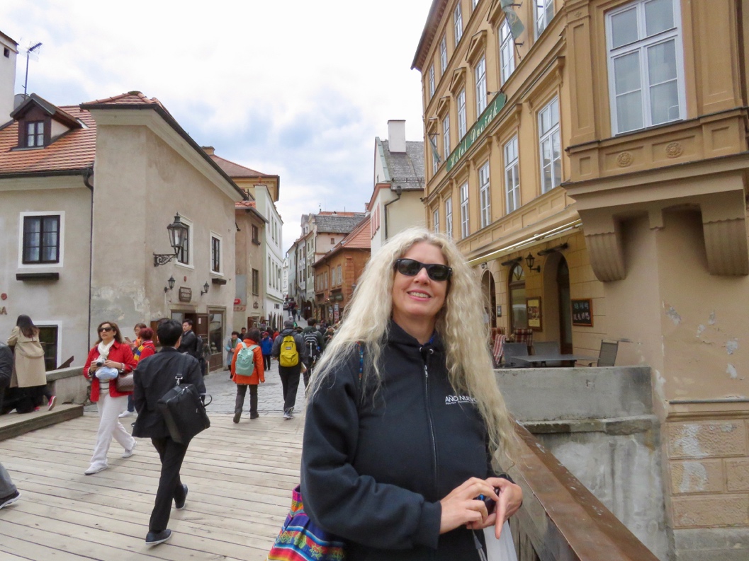 After two and a half hours of driving from Pilzn, we entered a great big Czech historical fantasyland, Cesky Krumlov, pronounced Chesky Krumlov, which we nicknamed “Krummy,” complete with a world class legendary castle that we went through, including the climb up to the very top of its tower. More on that later. Following the signs to the city center, we came to find out that this was one of those “One road in, and out” towns. This bridge connects the section of town where there is the only “legal” parking lot for the hotel at which we were staying. This is important to know as you will see, if you ever come to this mini-metropolis.