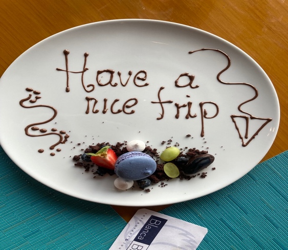 Something else that we discovered during our forays into the swimming pool was a most delicious libation, Mango Margarita with a bit of Tajin powder, which packs a bit of spice on the rim of the glass. Of course it’s made with Tequila. What a wonderful way to usher in the dinner hour. This, too was a nice touch.