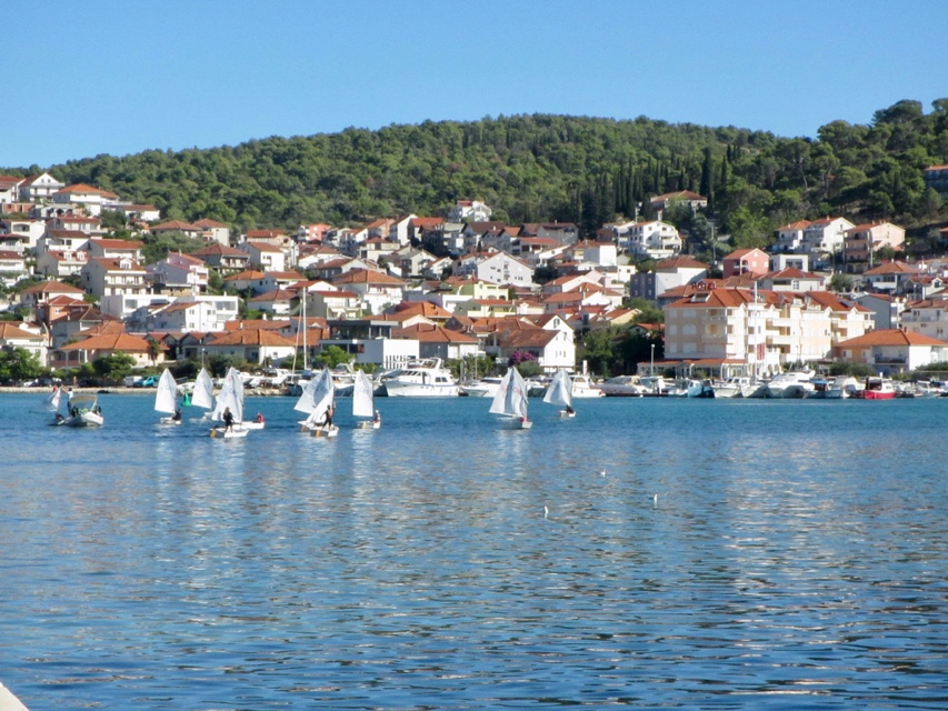 Split. The name says it. Whatever that means. I had never heard of it, until Naomi mentioned it to me, along with its history, which is rather unique. It was originally founded by the Greeks in the 2nd or 3rd Century BCE, but remained basically “under the radar” until the Roman Emperor Diocletian, who ruled between AD 284 and AD 305 began building what was to become his retirement palace there. He was one of the only Roman emperors to die of natural causes, and the first to retire voluntarily. Judging by the size, and grandeur of his retirement palace, he must have done quite well in the market, as well as other investments. He was a self-made man who rose through the ranks in the military until he finally took over as emperor: not unlike Jackson, Grant, Eisenhower, and a number of others who “made it.” The first hint of the natural beauty of this little metropolis came to us as we flew in to view it from our plane.